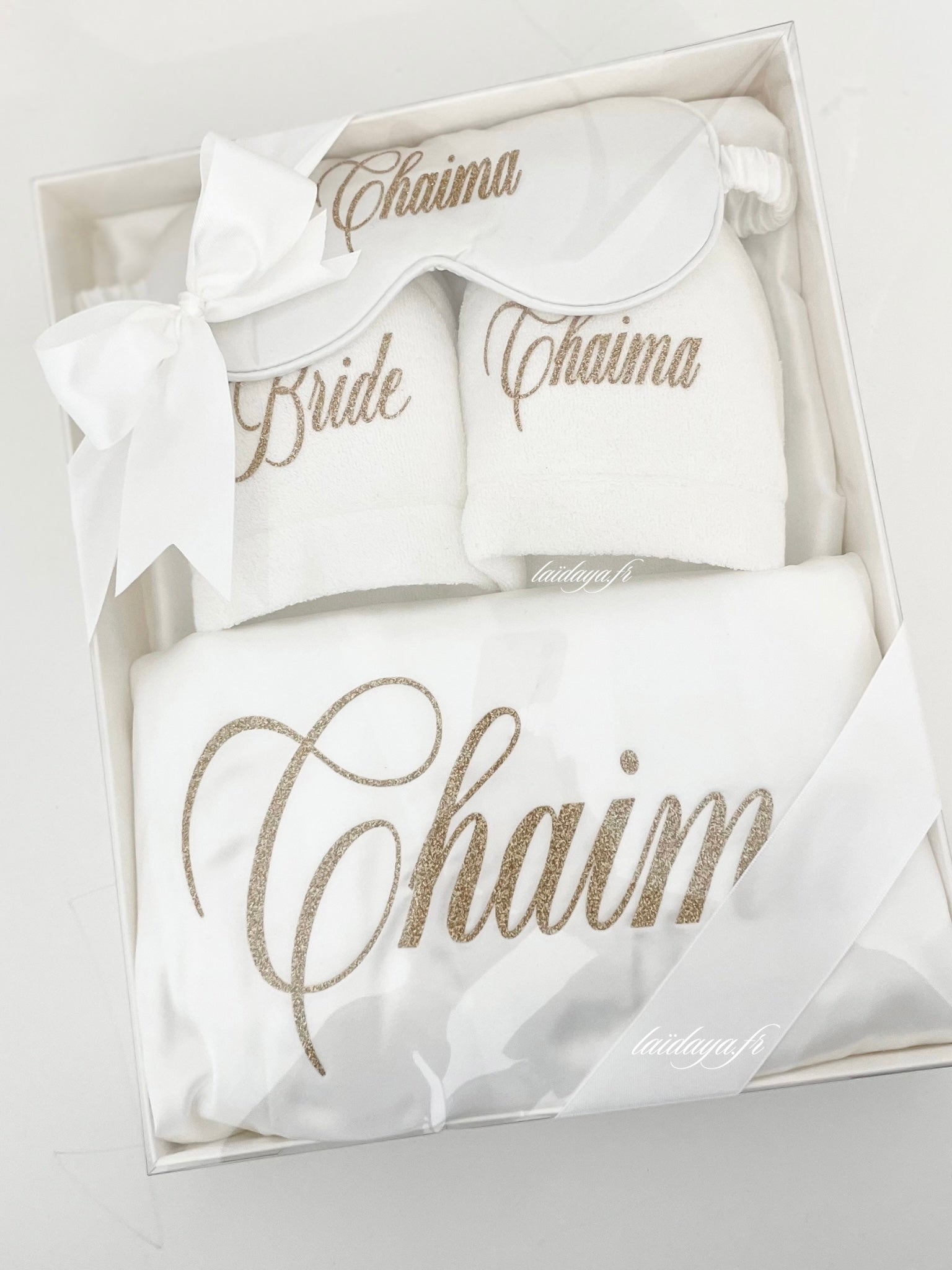 DESCRIPTION : 1 peignoir satin plume personnalisée L’indispensable pour votre jour J 💍 |