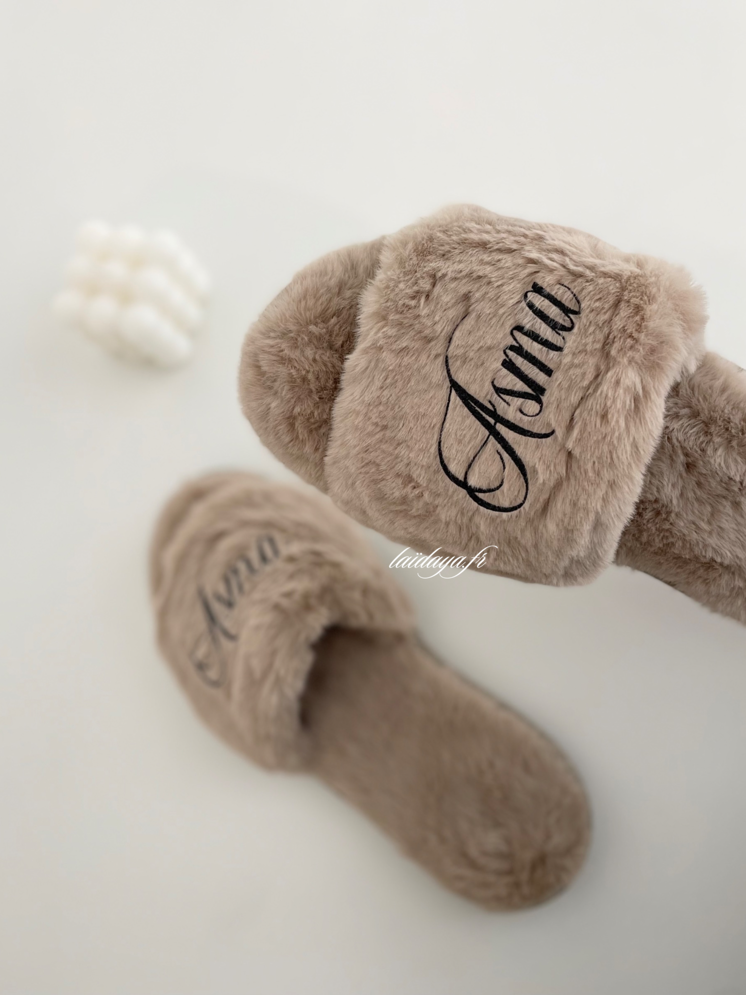 Chausson fourré, taupe