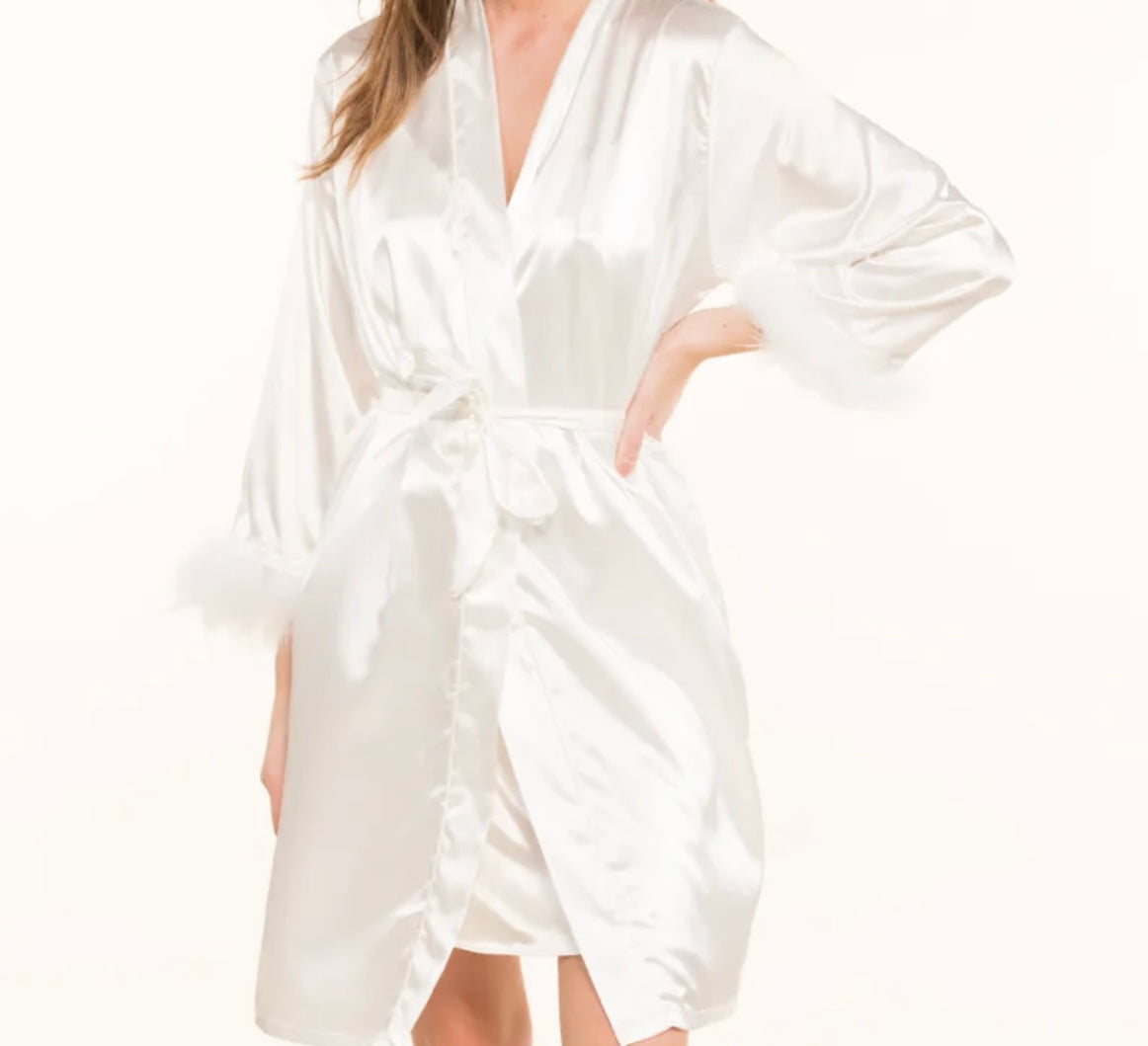 1 peignoir satin blanc, personnalisée au dos1 nuisette satin blanche